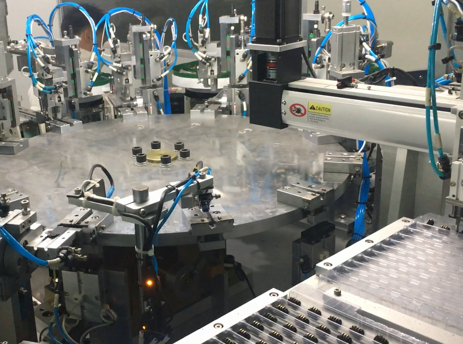 產品描述:本身設備是個(gè)成功案例,我們(men)已經(jīng)交付了100多台設備,也算是個標準(zhǔn)的設備了,設備上料采用振動盤供給,然後由微型氣缸構成的機械手夾取物料進行定位裝配,所有治具固定在一個圓盤上,由伺服(fú)電機控製圓(yuán)盤轉動定位,實現12個工位按序裝配,一圈下來完成(chéng)整個產(chǎn)品的自動裝配,生產效率(lǜ)可達20-40PCS/分鍾,可以大大減少用(yòng)工成本(běn),從而讓(ràng)產品更有競爭力...